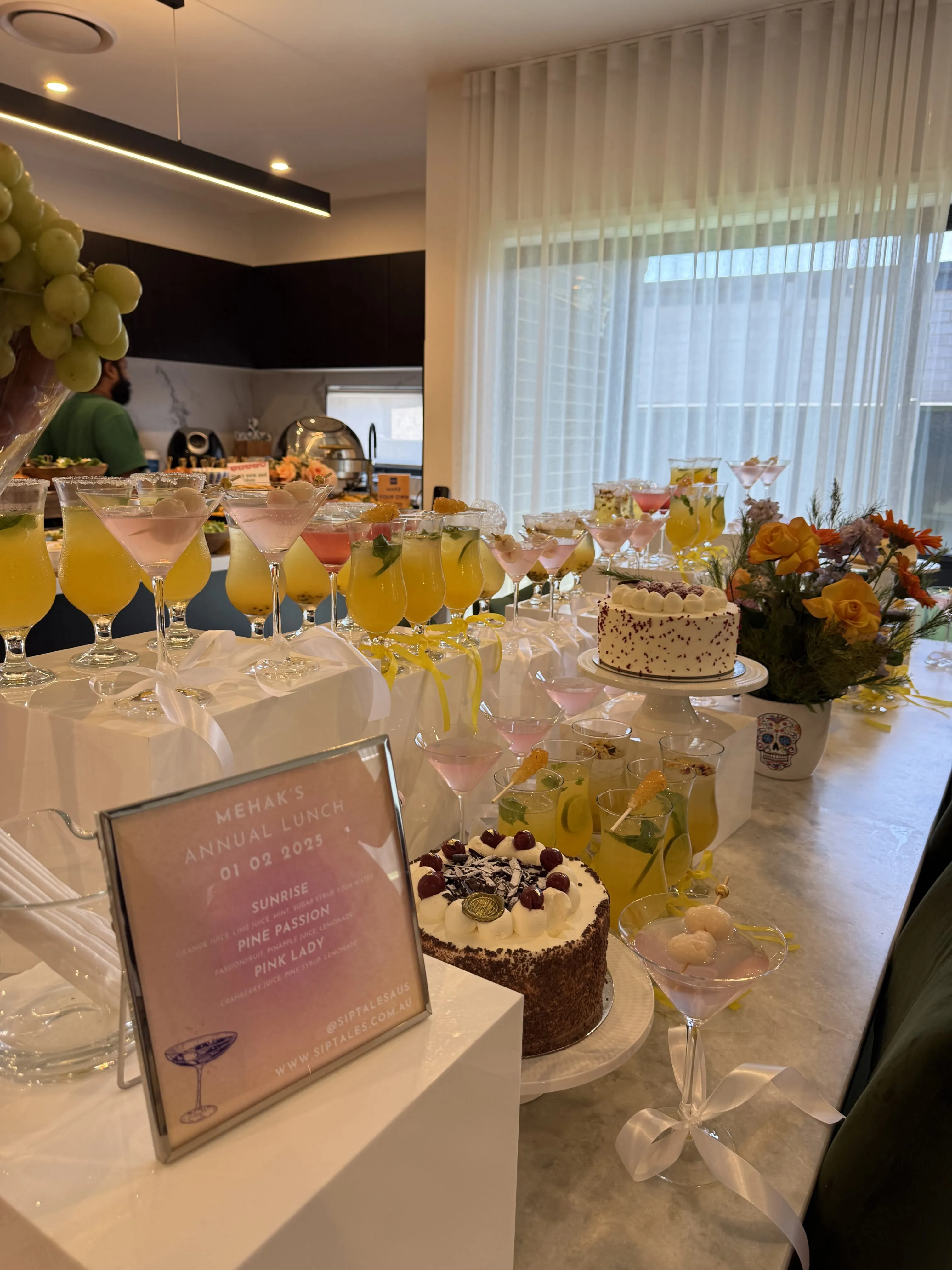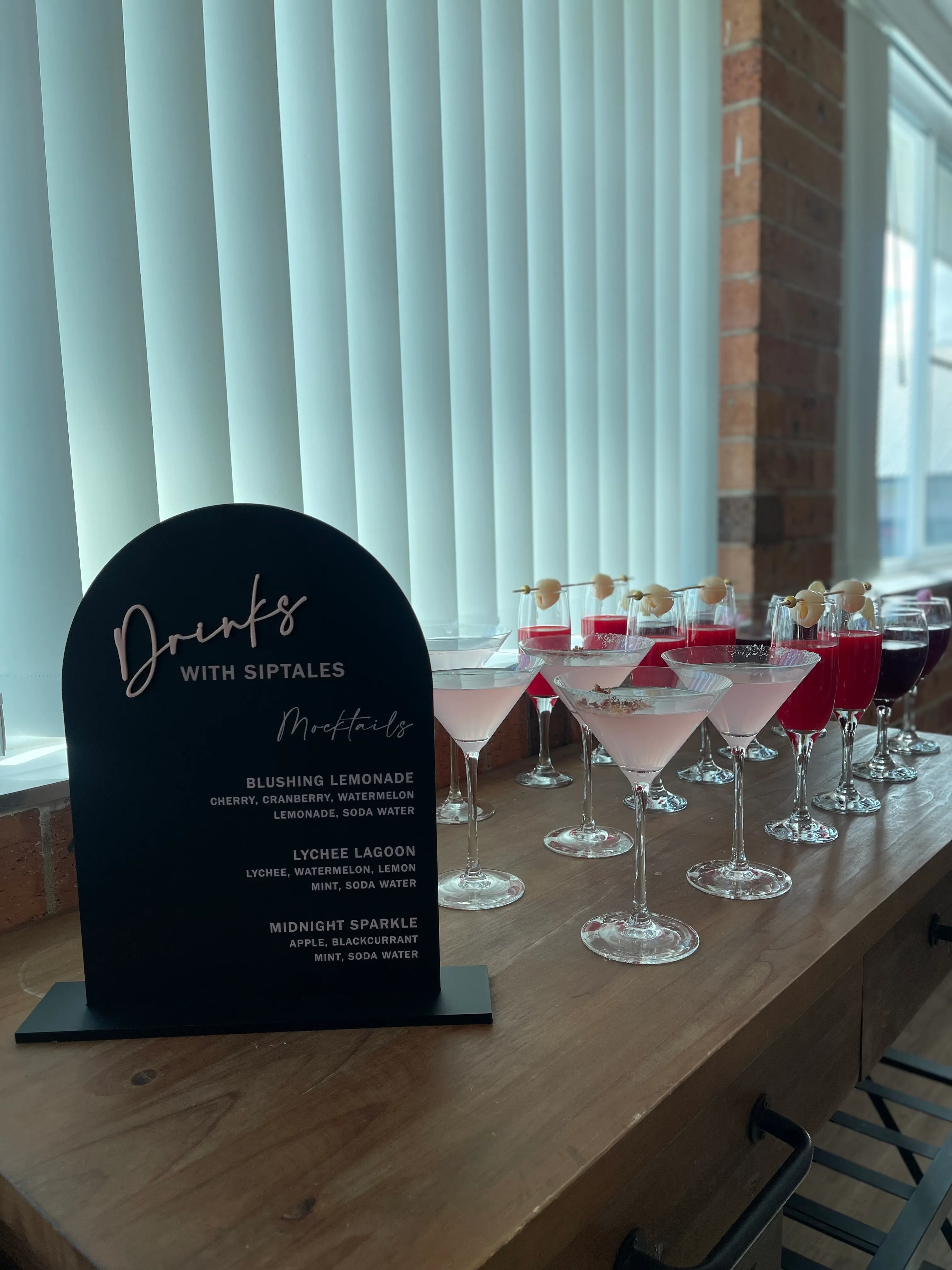 SipTales offers a wide range of event services, is there is something for everyone! Whether you need a stunning set of mocktails for any number of guests, acrylic riser hire for your catering display, cart/table hire, floral arrangements, event assistance, BTS content creator and MORE. Review our service list and enquire today to see what works best for you.